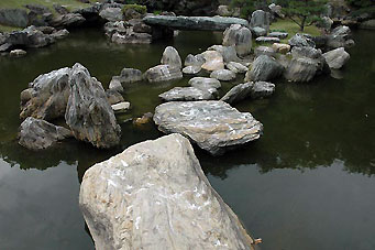 adjacent pond garden. The many splendid stone arrangements fashioned