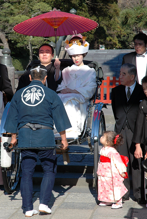 Das Brautpaar in der Rikscha und das kleine Mädchen