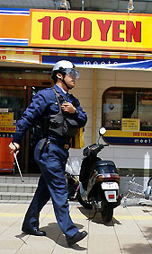 Sicherheitsbeamter vor 100-Yen-Laden
