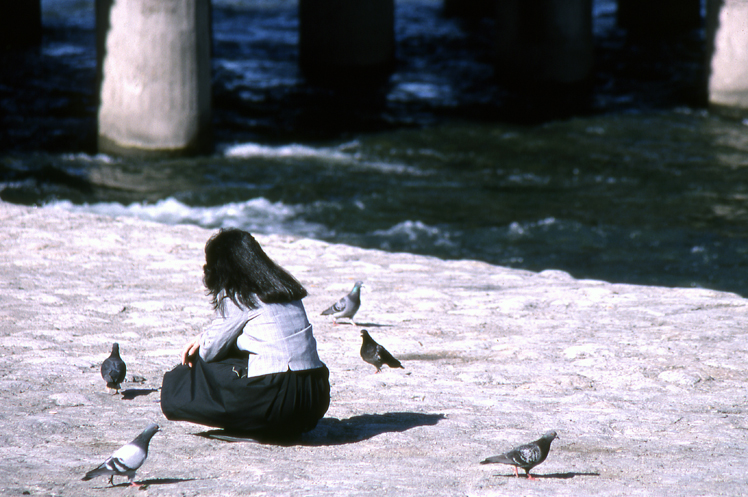 Das Taubenmädchen am Fluss