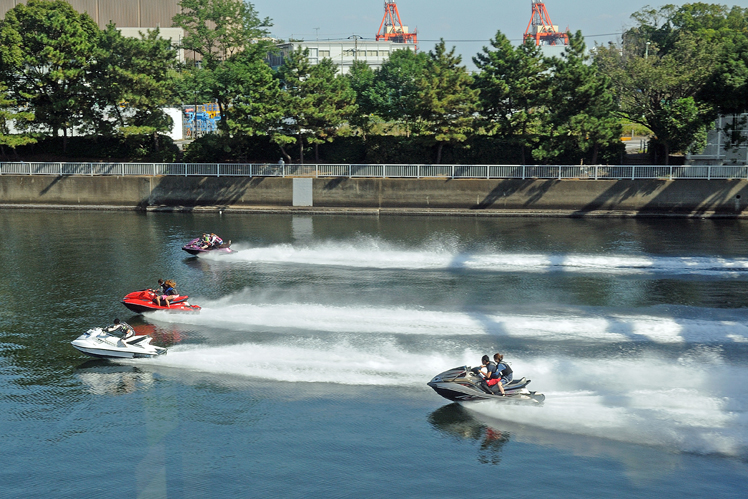Die Jetskier im Tokyoer Hafen